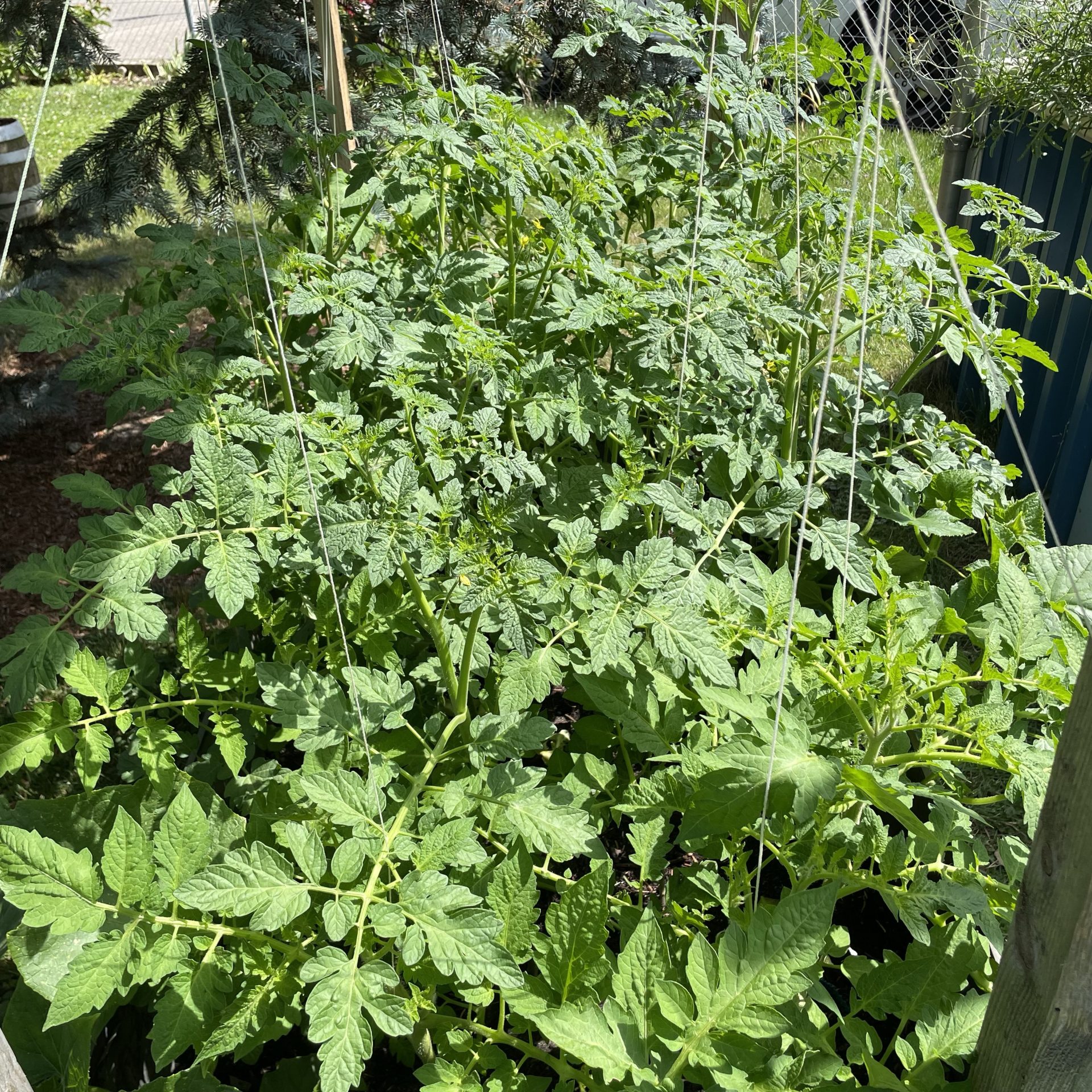 Mit dem Beginn des neuen Tomatenjahres kam auch die Überlegung, dass es dieses Jahr vielleicht nicht soooo viele Tomaten sein müssen. Nur ein paar Sorten vielleicht. Doch wenn ich jetzt wieder meinen Garten anschaue, sehe ich nur Tomaten. Das Tomatenhochbeet ist bis zum Anschlag voll mit Tomaten, Salat und Gurken. Die unteren Blätter der Tomaten habe ich bereits mehrmals abgezwackt und auch ein bisschen ausgegeizt. Sie sehen prächtig aus. Aber das ist nicht alles. Mehrere Töpfe mit Tomaten haben wir auch noch im Garten stehen. Diese sind nicht so üppig im Wachstum. Einige davon tragen jedoch bereits Früchte.
