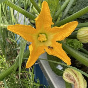 Dem Kurkuma geht es prima. Er gedeiht prächtig. Der Tamarinde geht es auch gut. Sie macht wieder schöne Blätter. Sie sieht so schön aus. Die Marokkanische Minze sollte man trocknen. Sie wird üppig, eventuell sollte sie in einen Topf. Den Chilis geht es gut. Das Tomatenbeet ist ein Urwald. Die Gurken beginnen, ihre schönen Blüten zu bilden. Auch die Zucchinis haben sehr schöne Blüten. Sogar eine Zitronentomate ist bald reif. Nächste Woche werde ich diese essen.